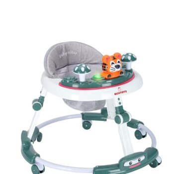 Baby Walker Merry for Baby Kids 6 to 18months with Music Tray/3level Height Adjustment/Multi-Function Anti-Rollover Folding Walker/Food Tray (Green)