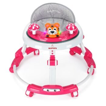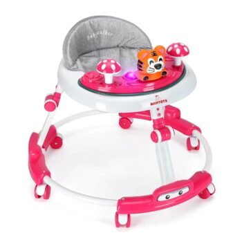 Baby Walker Merry for Baby Kids 6 to 18months with Music Tray/3level Height Adjustment/Multi-Function Anti-Rollover Folding Walker/Food Tray (Pink)