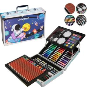 Space Art & Craft Painting Box, Big Coloring Suitcase Multiple 145 Color Kit, Professional Drawing Water Color Pencils, Oil Pastel, Sketches & Acrylic Paint Brush Birthday Colour Box