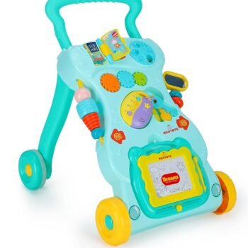 Baby Walker Merry with Musical Tray/Food Tray/3 Level Height Adjustment/360° Swivel Wheels Activity Walker(Blue)