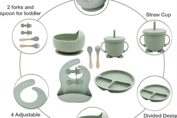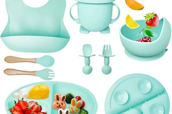 Original price was: ₹2,999.00.₹1,299.00Current price is: ₹1,299.00.Silicone Baby Feeding Set, Complete 8-Piece Baby Led Weaning Set | Baby Feeding Product,Suction Plate, Bowl,Cup, 2 Spoon, 2 Fork and Bib for Baby (Green)