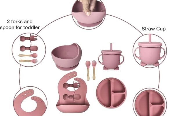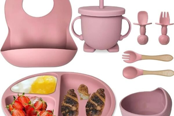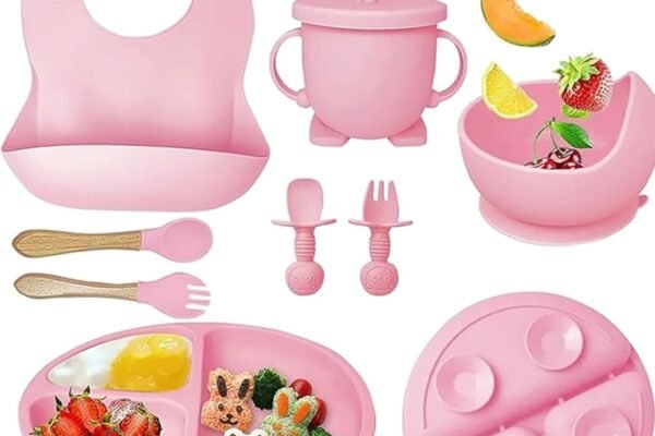 Original price was: ₹2,999.00.₹1,299.00Current price is: ₹1,299.00.Silicone Baby Feeding Set, Complete 8-Piece Baby Led Weaning Set | Baby Feeding Product,Suction Plate, Bowl,Cup, 2 Spoon, 2 Fork and Bib for Baby (Pink)