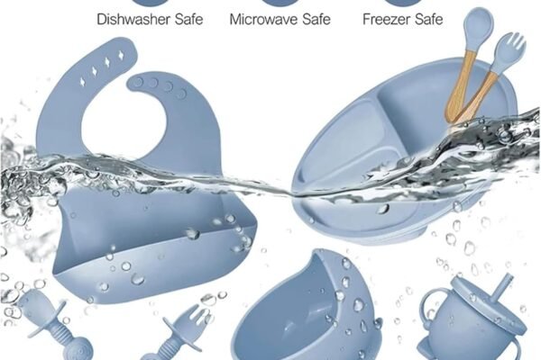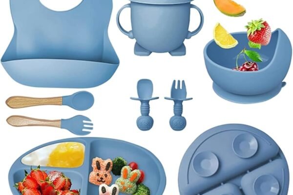 Original price was: ₹2,999.00.₹1,299.00Current price is: ₹1,299.00.Silicone Baby Feeding Set, Complete 8-Piece Baby Led Weaning Set | Baby Feeding Product,Suction Plate, Bowl,Cup, 2 Spoon, 2 Fork and Bib for Baby (Sky Blue)