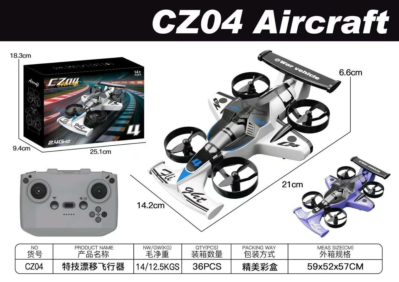 Meet the CZ04 Aircraft, a revolutionary blend of racing car aesthetics and drone-propulsion technology. Unlike standard RC cars that rely solely on wheels, this hybrid uses four high-powered vertical fans to generate incredible speed and unique “low-gravity” drifting maneuvers that standard toy cars simply can’t match.