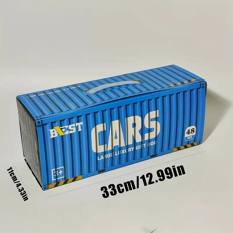 This isn’t just a container; it’s a world of fun! The large blue shipping container (37.3cm) features a convenient carry handle and unfolds in seconds to reveal a multi-lane urban race track and parking garage. Clean-up becomes part of the game as kids park their fleet back inside. - Massive 48-Car Collection