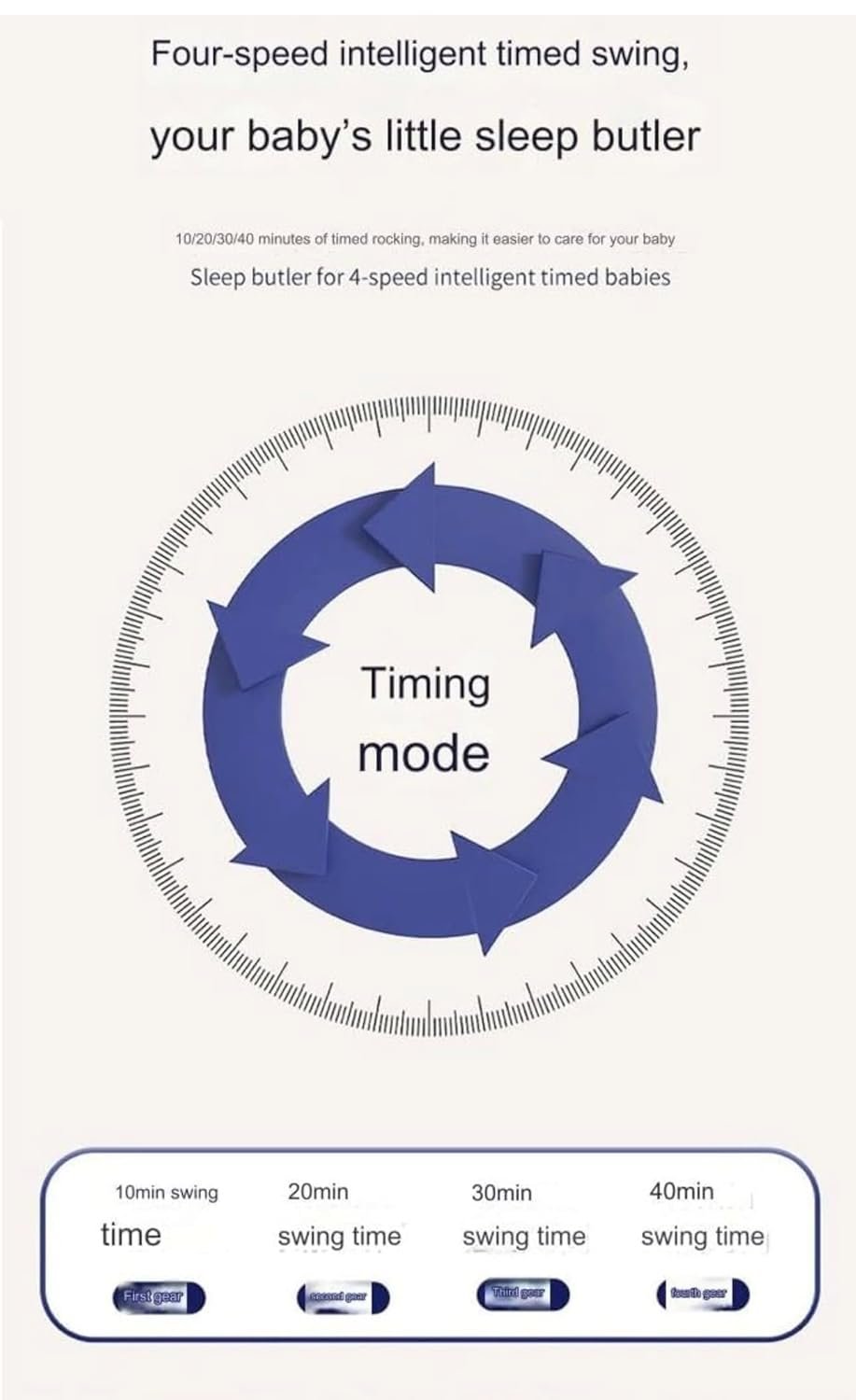 - Adjusting at will for 8-15-30 minutes timing with one button. Since the swing is Bluetooth compatible, you are able to connect it to your phone and play the 12 built-in soothing lullabies.