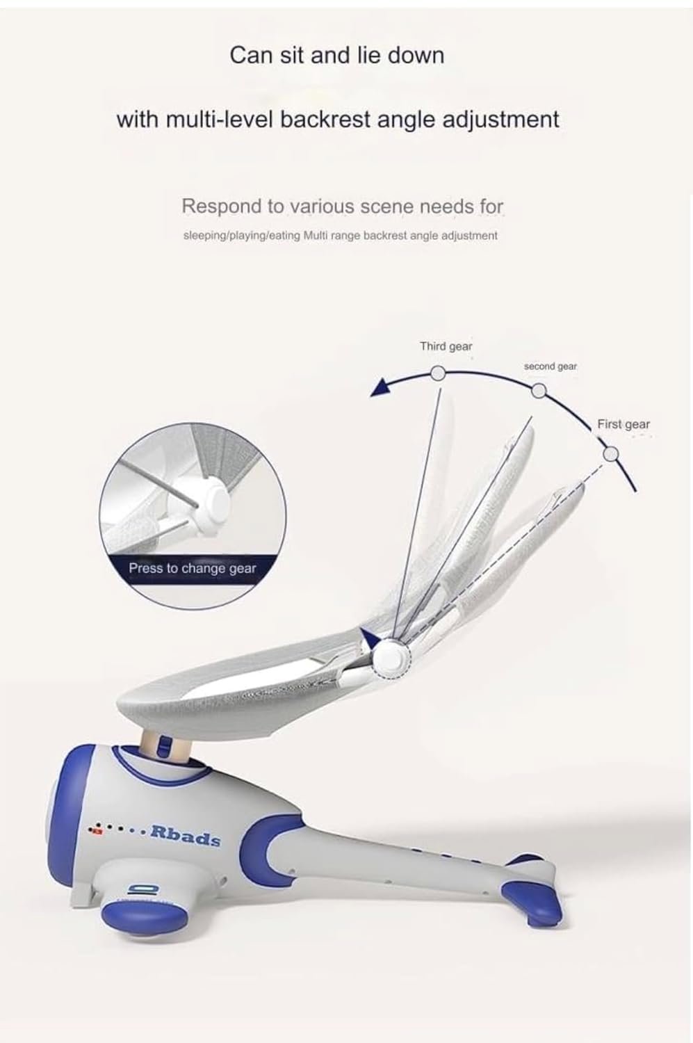 - With additional features including 3-point harness, 2 hanging stuffed toys, Richtots baby rocker/bouncer provides a cozy space for your baby to rest. There’s a large sun hood/shade to keep the baby protected on those fun days out or harsh pop lights indoors.
