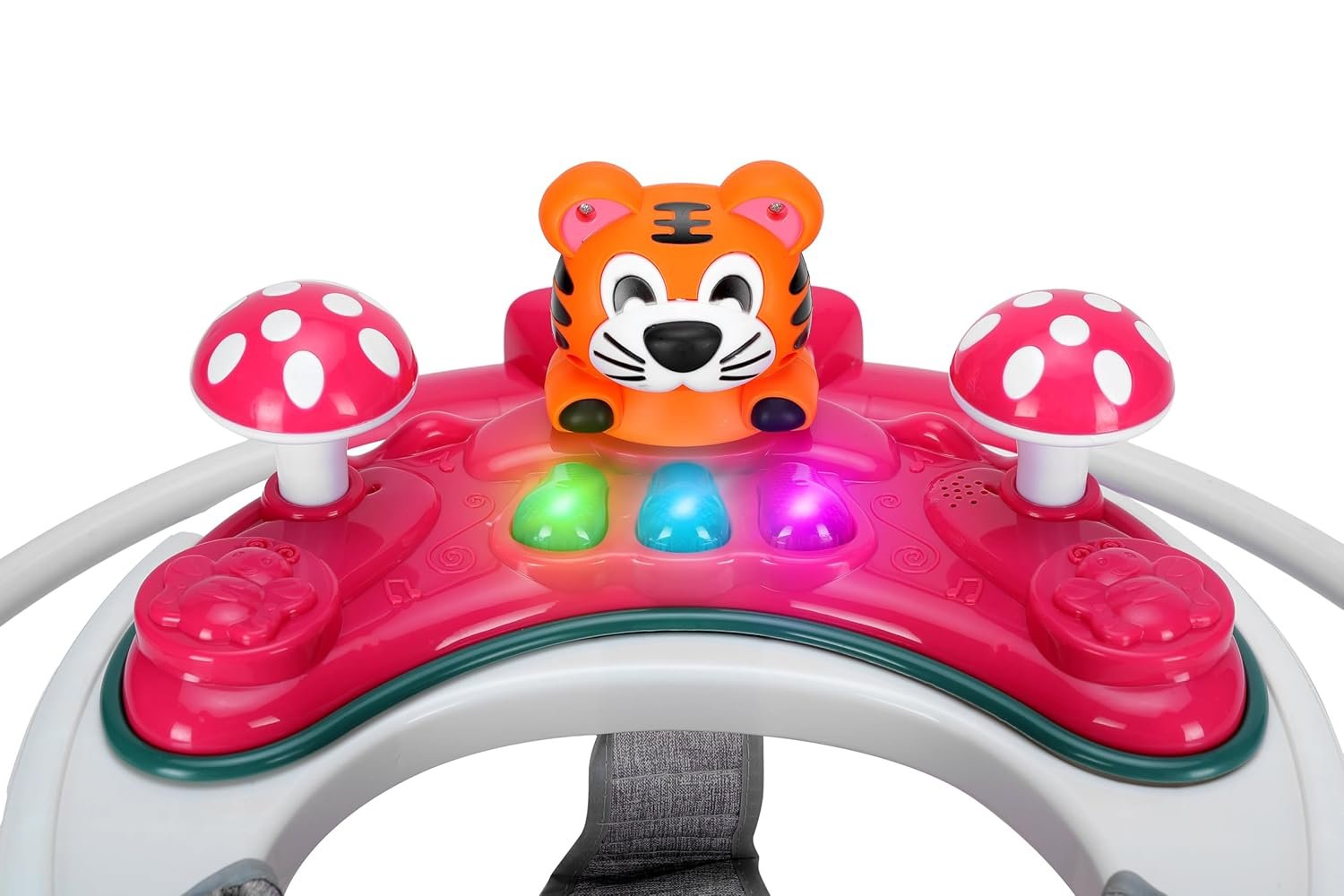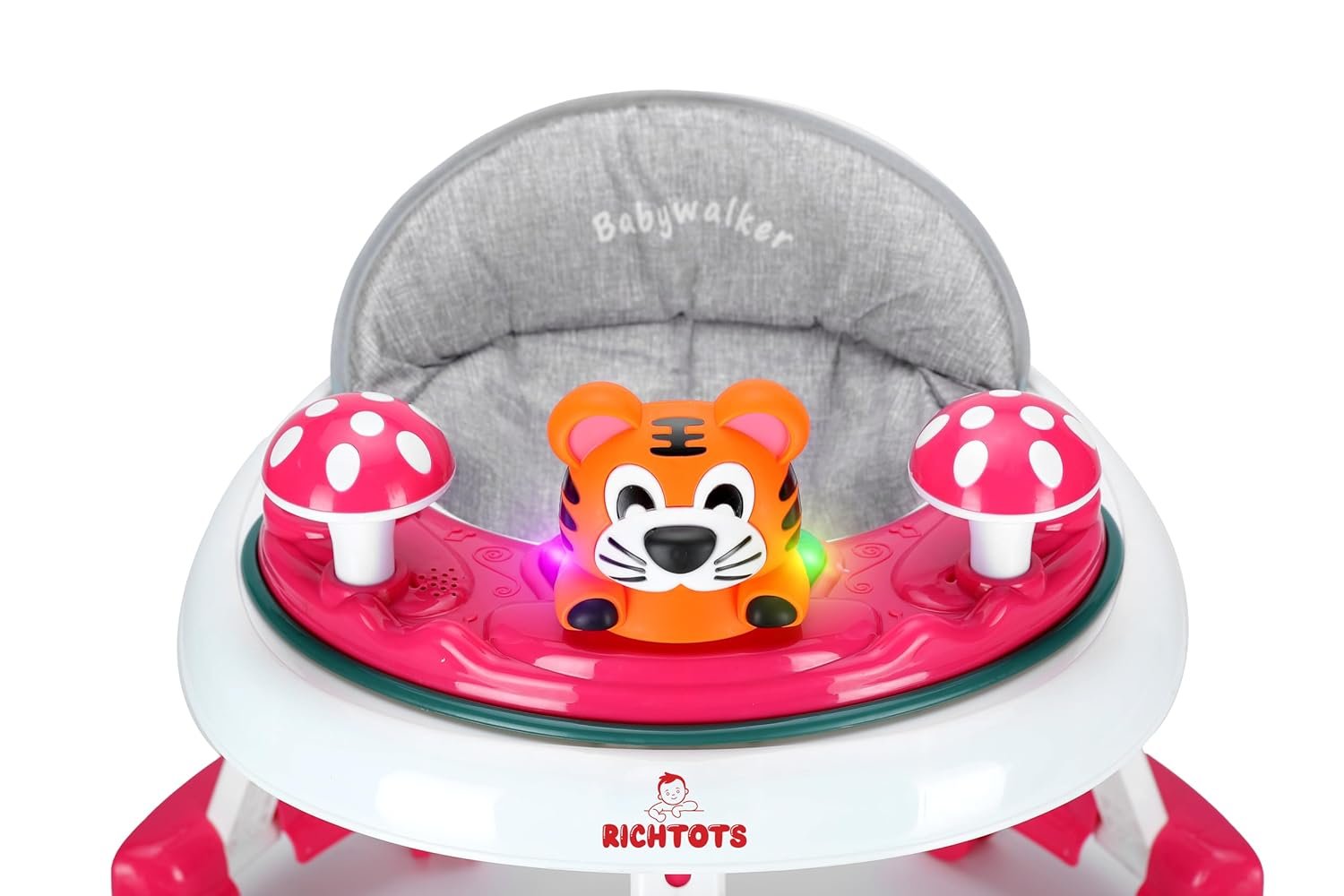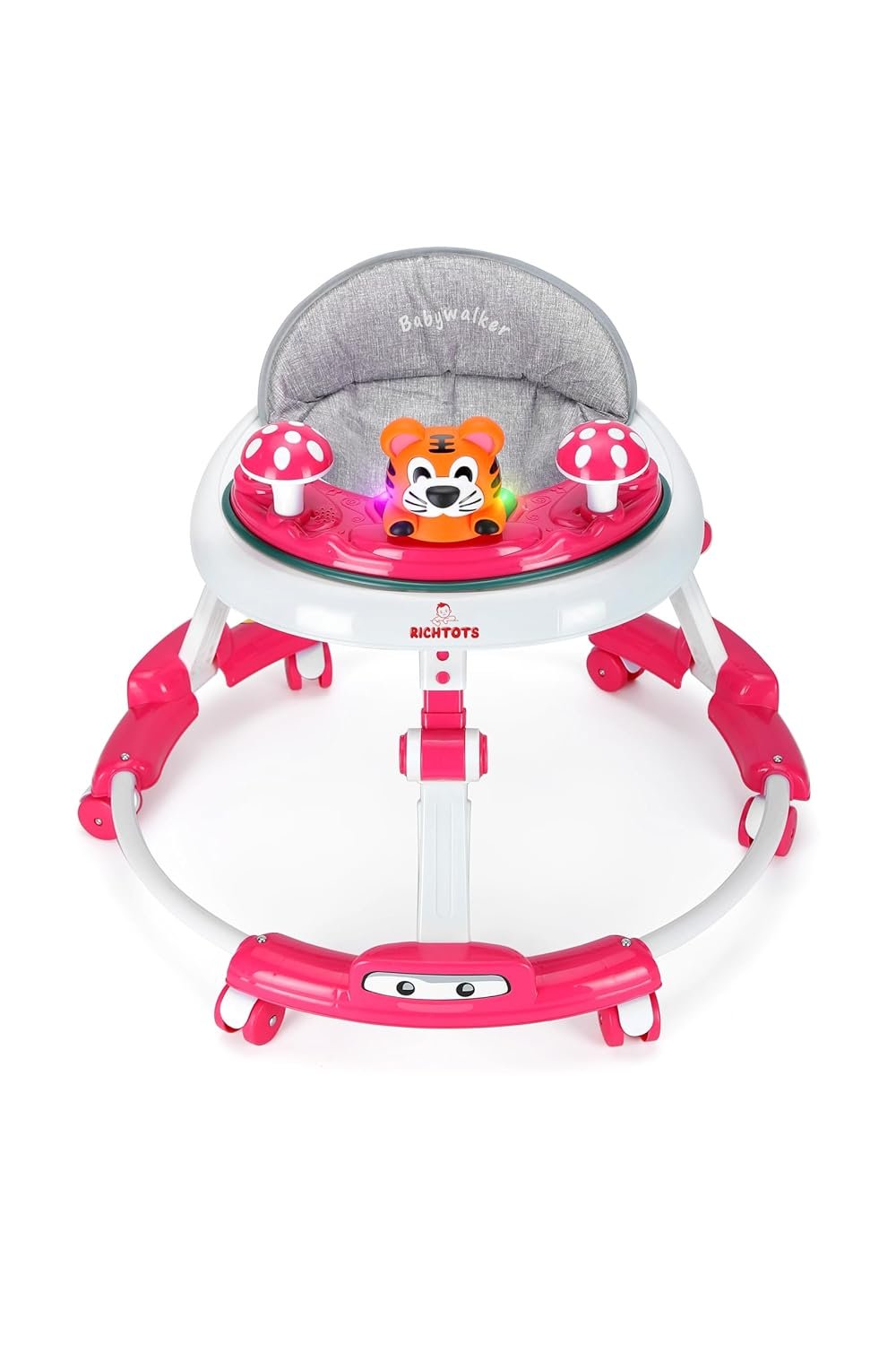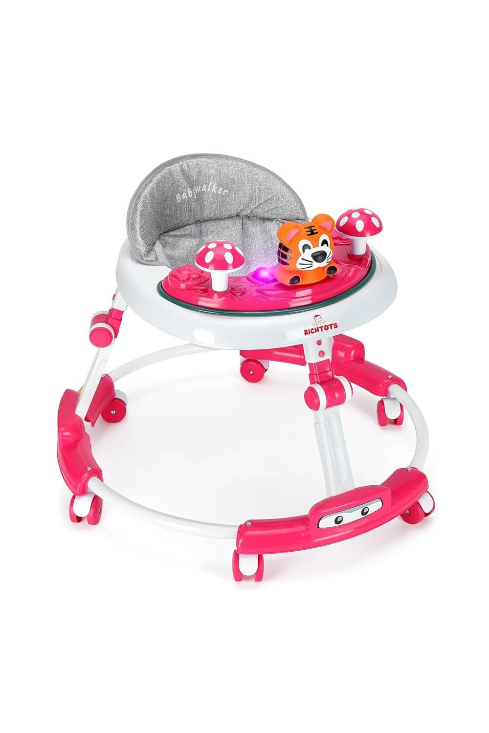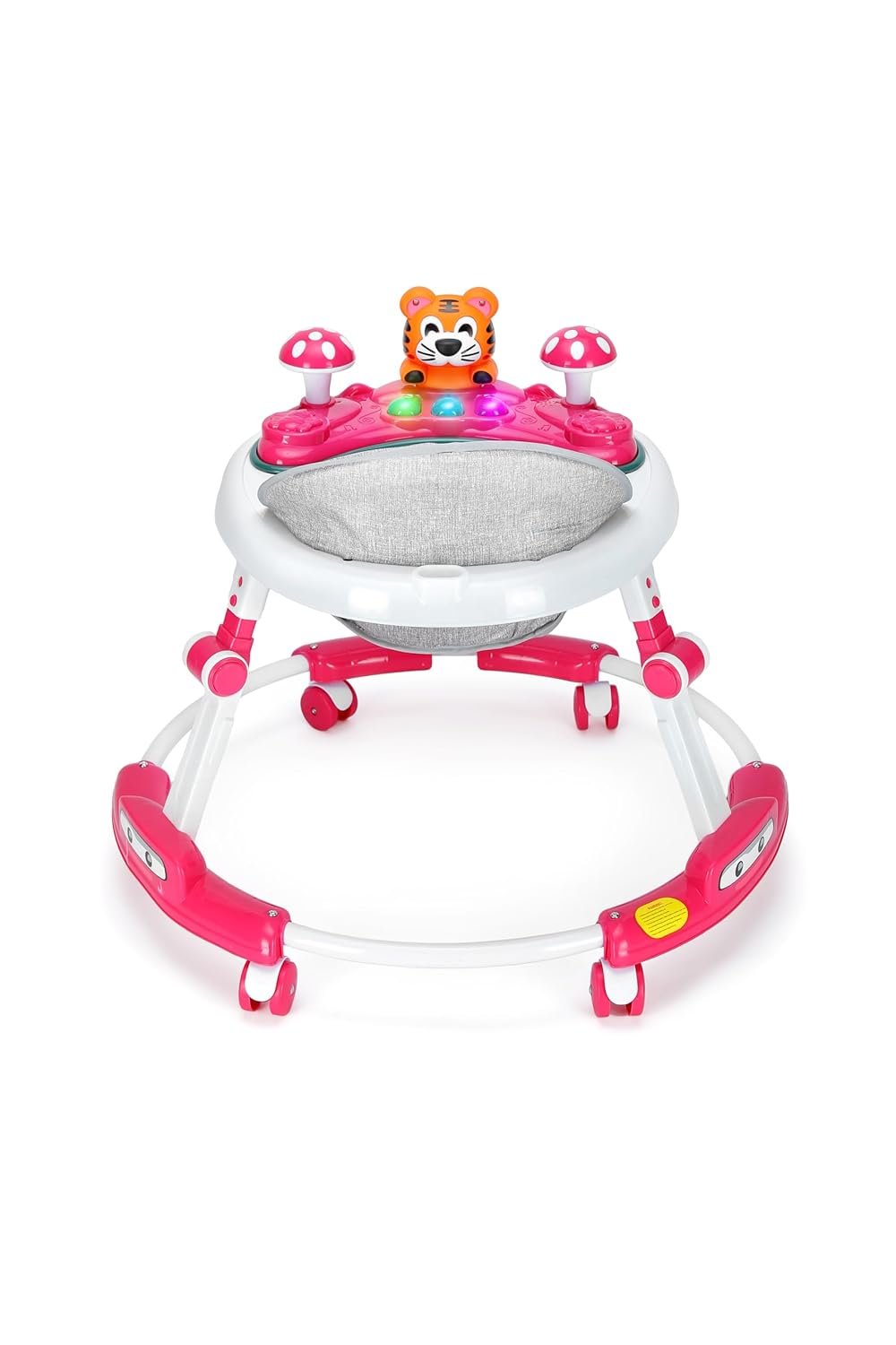 - Walker comes with a detachable toy tray with light & music enabled toys including detachable rattle toys