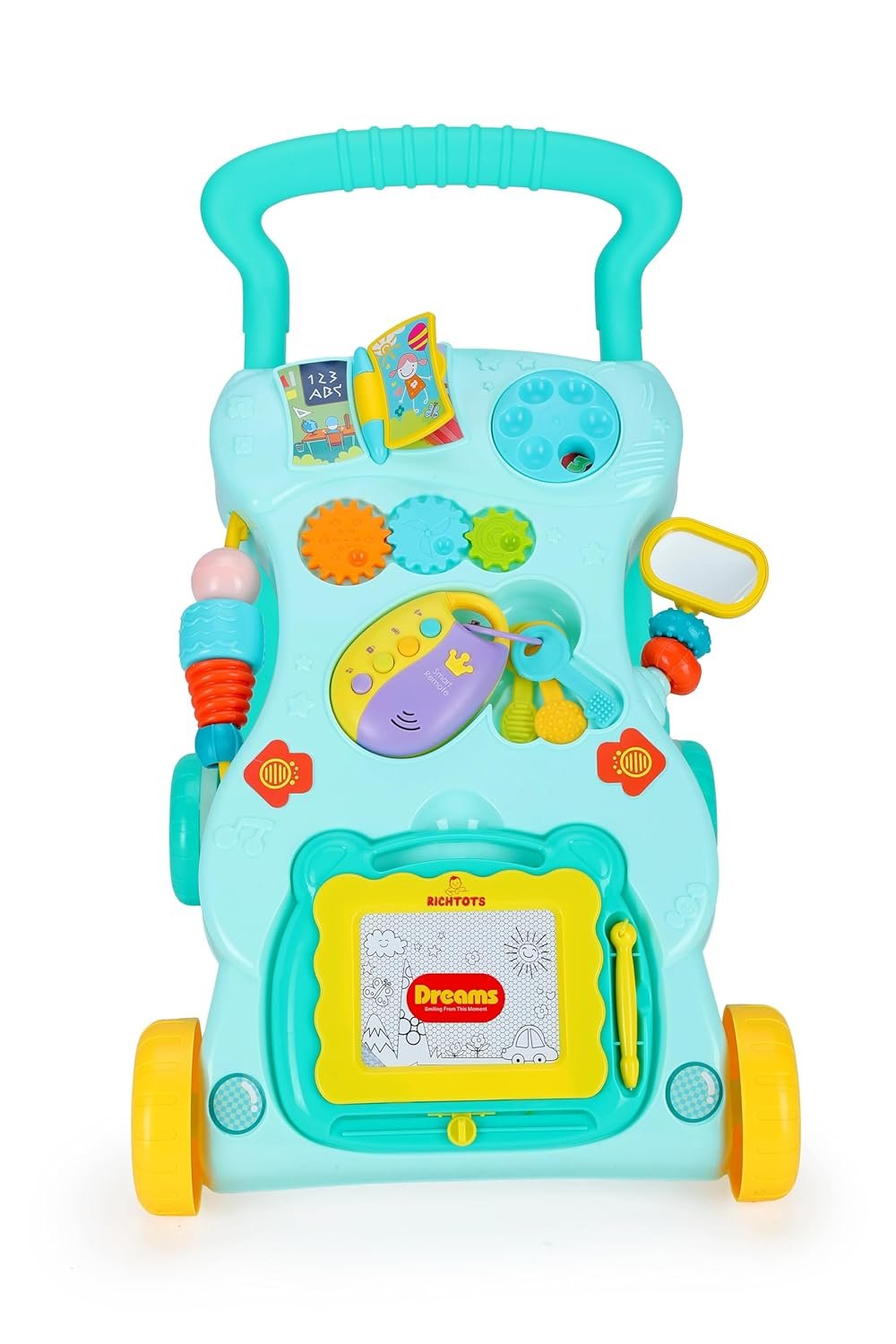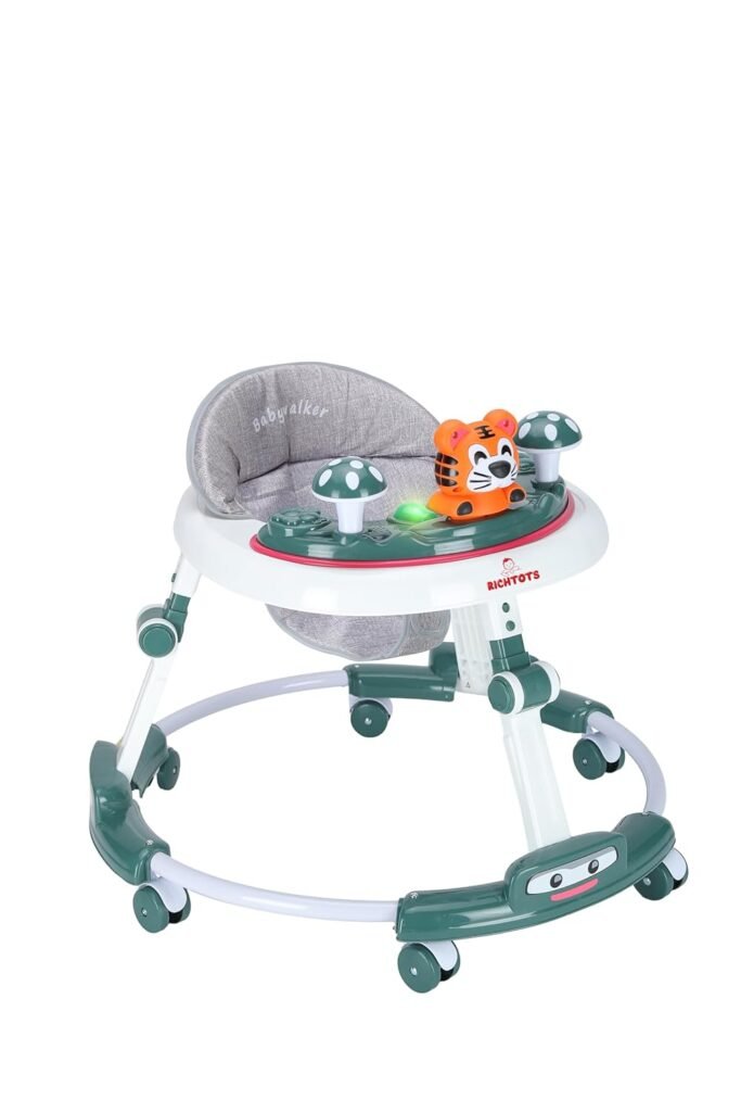 - Develpmental Toys: Equipped with a play tray with colourful toys to stimulate sensory, motor & cognitive skills.
