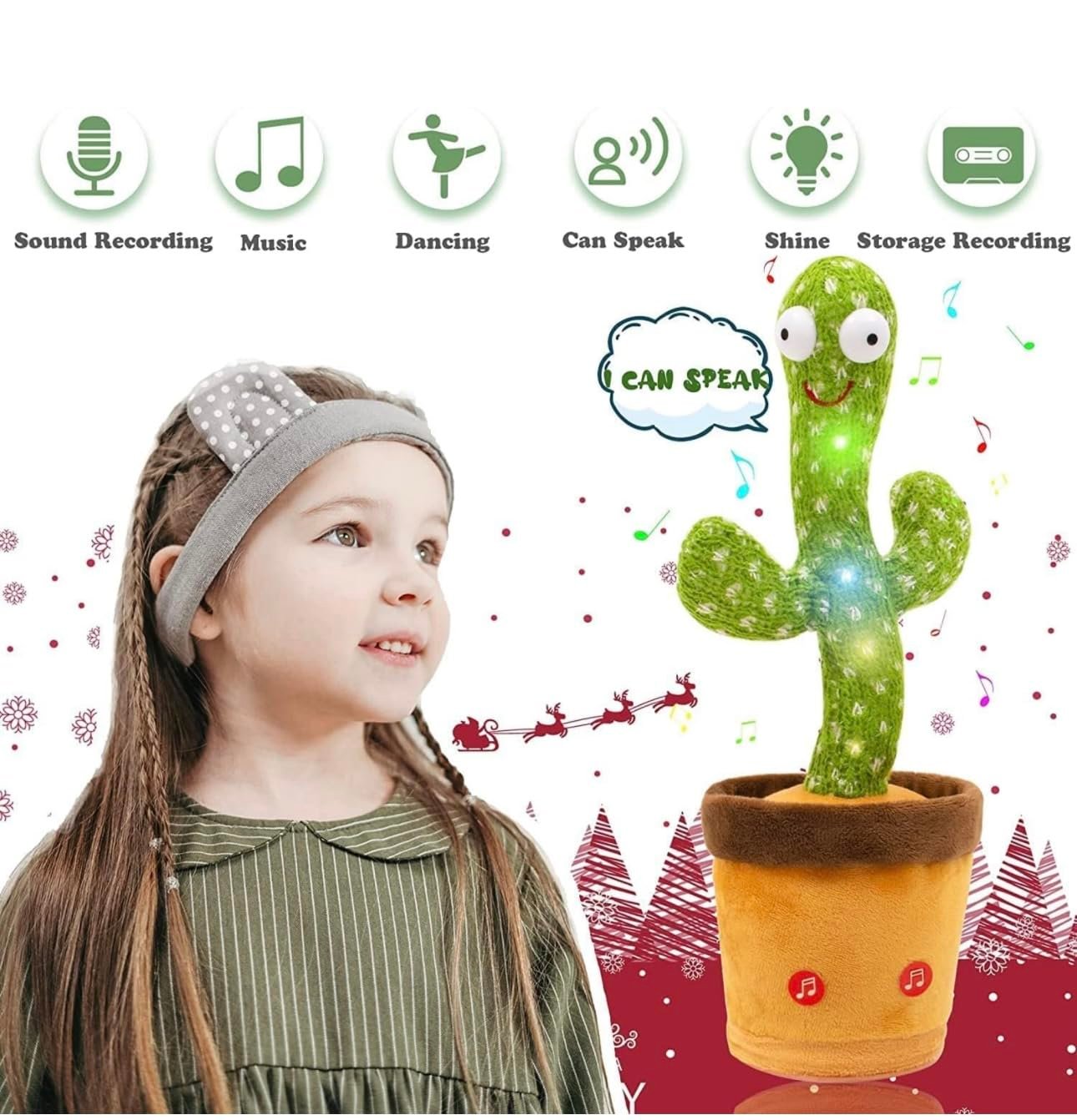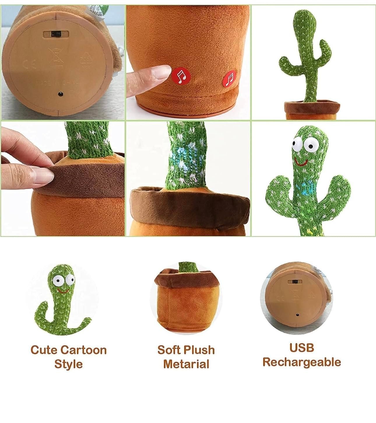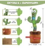 Dancing Cactus Singing Plush Toy with Rechargeable Cable & Recording Function – Repeat What You Say – Pack of 1