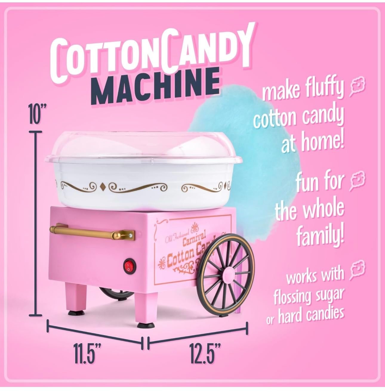 intage Homemade Cotton Candy Floss Maker Machine Electric Cotton Candy Maker Sugar Floss Maker Machine Make Hygienic Cotton Candy Machine for Your Kids