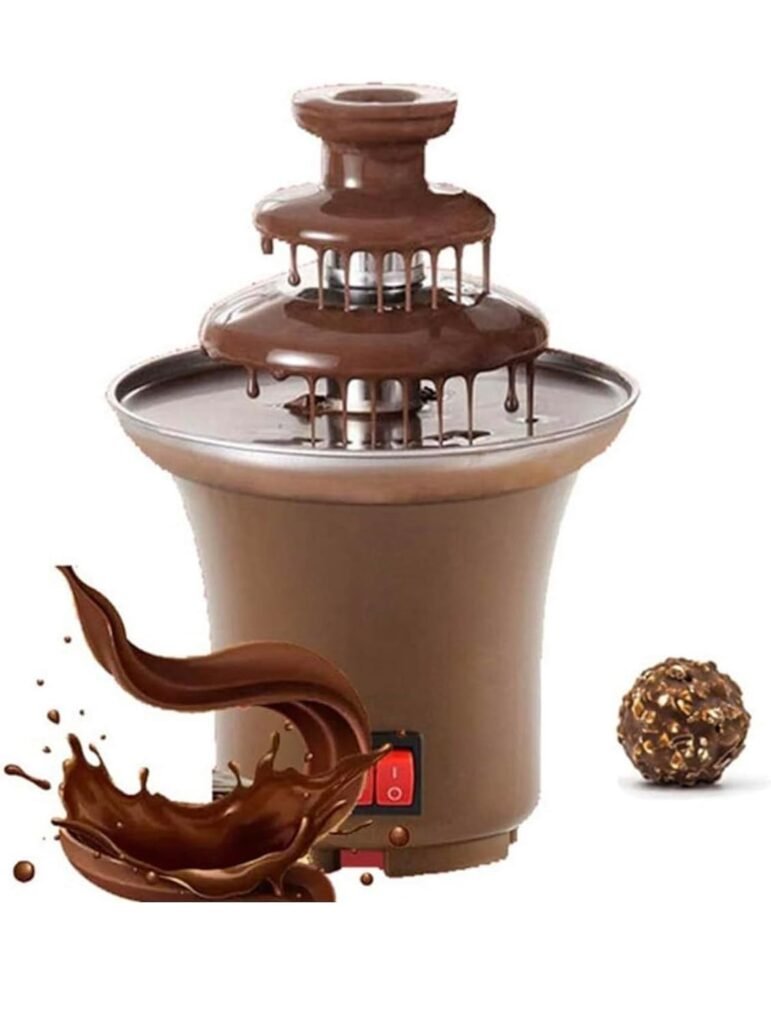 Electric Mini Chocolate Fondue Fountain, Easy to Assemble Three Layers Creative Design Chocolate Melt With Heating Machine For Household Birthday Party, Home & hotel – brown Color.