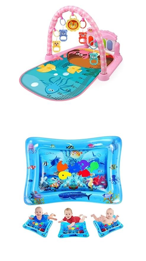 Premium 2in1 Combo Baby Play Mat Gym & Fitness Rack with Hanging Rattles Lights & Musical Keyboard Mat Piano with Water Play Mat Activity Centre (Pack of 2) Multicolor