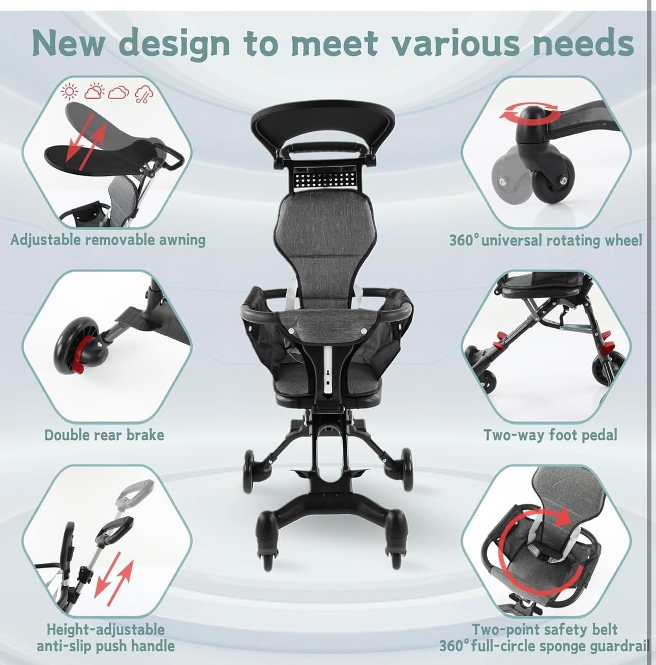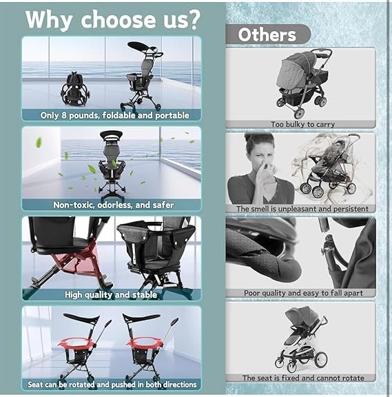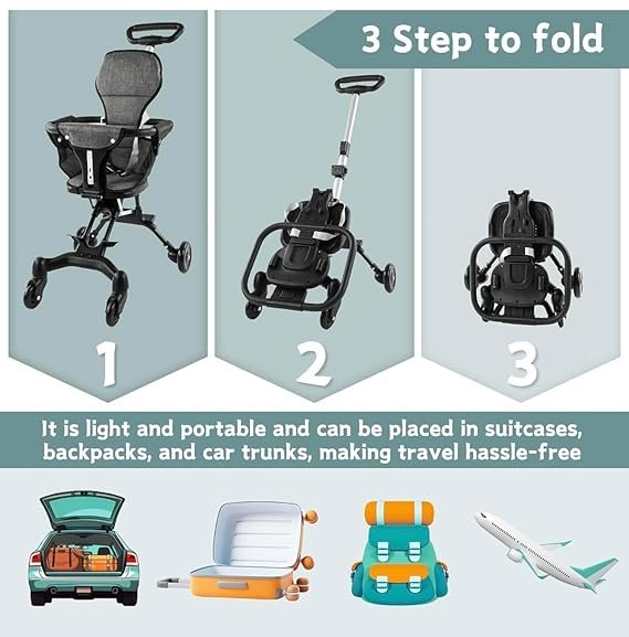 - User-Friendly Folding Mechanism: Featuring an easy-fold system, stroller offers unparalleled convenience, requiring minimal effort to switch between modes or compactly store when not in use