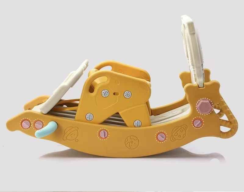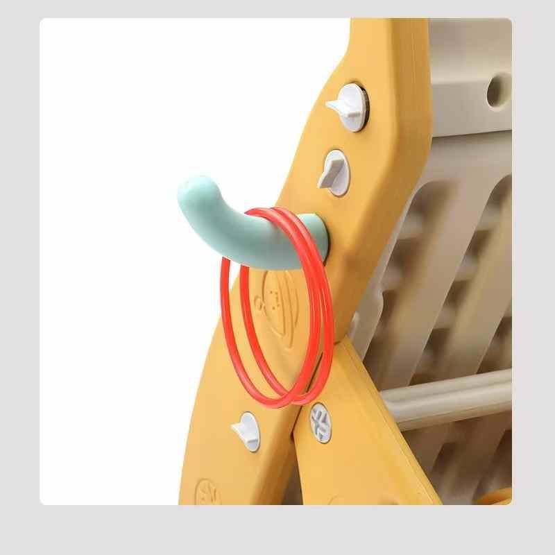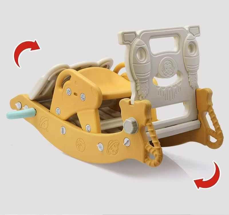 4-in-1 Multi-Activity Hub: Effortlessly transforms to suit your child’s mood—switch between a long indoor slide for adventurous descents, a gentle rocking horse for calming motion, a ring toss station for coordination, and a study desk/chair for creative tasks.