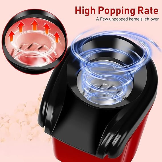 Premium Electric Popcorn Maker – Hot Air Popper Machine, Fast & Healthy Oil-Free Popcorn Maker for Home – Compact & Easy to Use (Red)