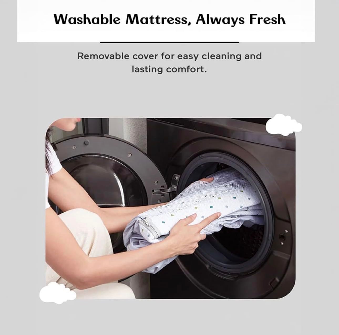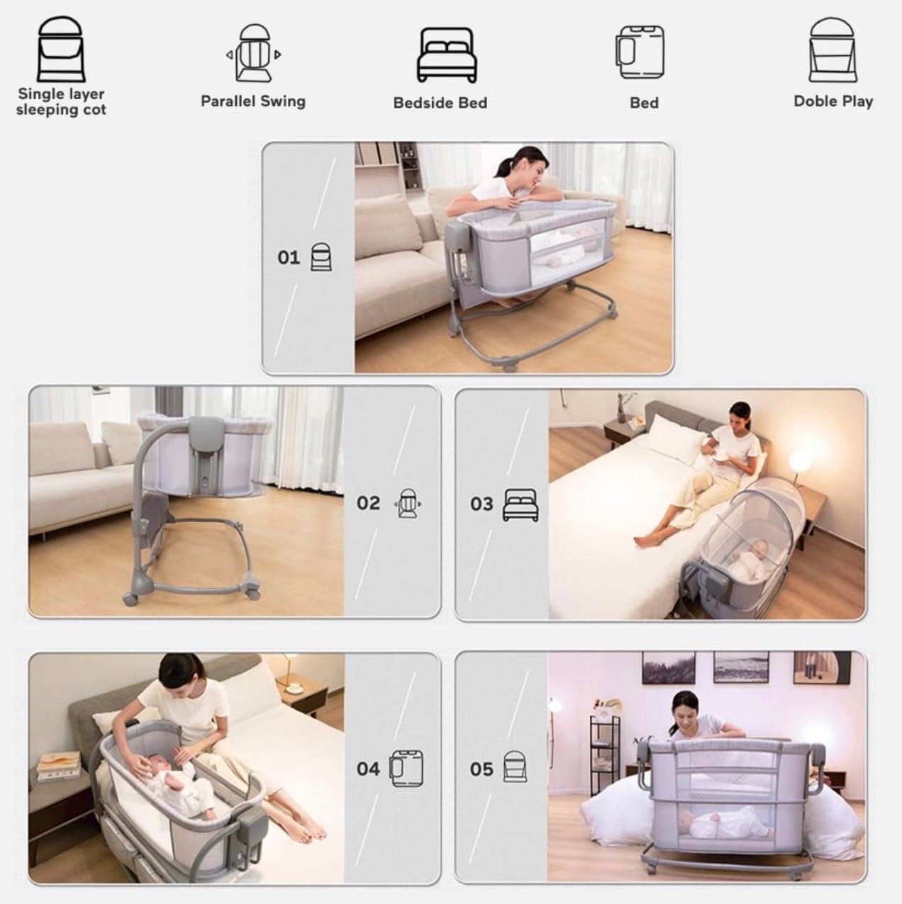 - Smart Rocking Cradle: The cradle is designed with smart rocking technology to gently soothe your baby. It automatically mimics the natural motion of a parent’s rocking, providing a comforting and peaceful experience for your little one.