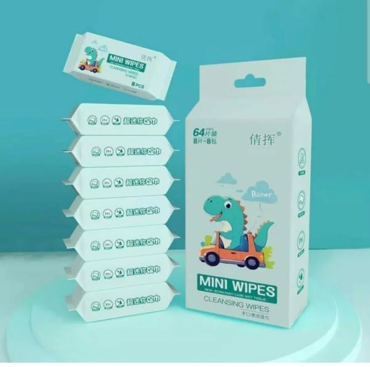 Premium Mini Baby Wipes Disposable Portable Pocket Water Wipes Baby Skin Care Wet Tissue Travel Children Baby Hand & Face Baby Sanitizing Cleansing/Moisturising For Fresh 8 Mini Pack (64 Wipes X 2 Pack) Random Cute Animals