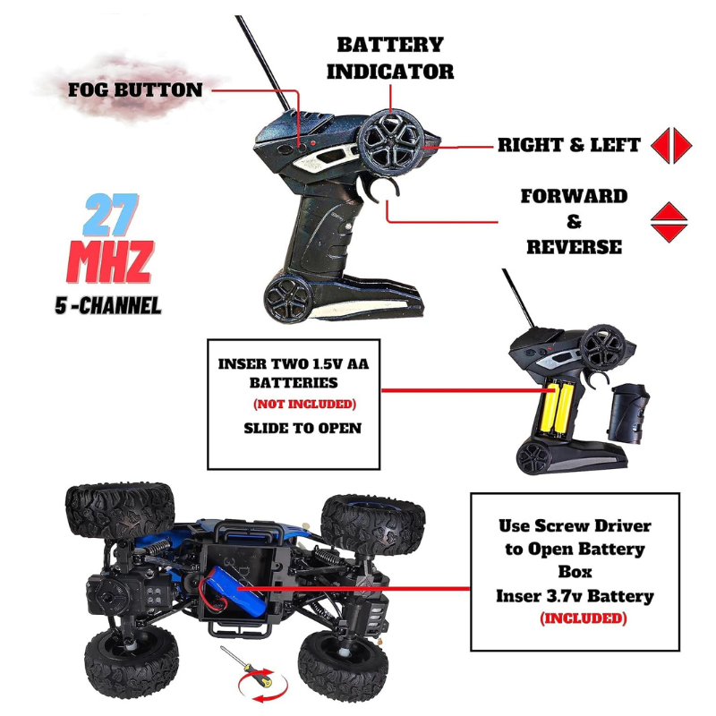 Off-Road Mastery: Built as a 1:16 Scale Rock Crawler with an independent suspension system and rugged tires to conquer bumps and uneven terrain.