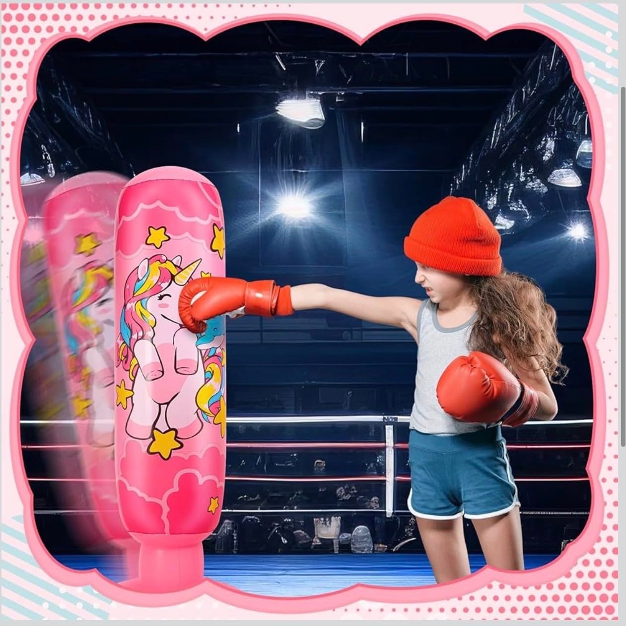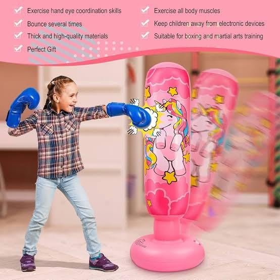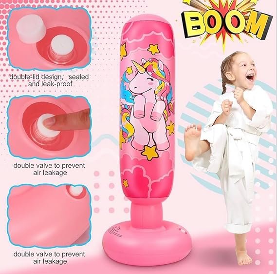 Premium Standing Bounce Back Unicorn Boxing Toy for Boys & Girls, Indoor Outdoor Sports Fun Toy | Inflatable Punching Bag for Kids –Pink (Pink)