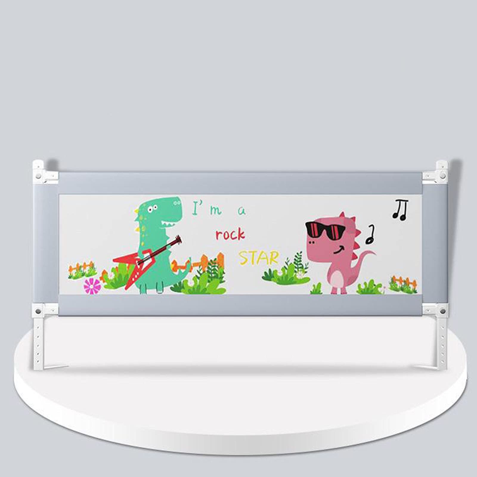 Premium Vertical Lift Baby Bed Rail Guard – Extra Tall Safety Barrier for Toddlers & Kids – Breathable Mesh with “Rock Star” Dinosaur Prints – Adjustable Anti-Fall Bed Protector for Twin, Queen, & King Size Beds (Grey/Dinosaur Theme)