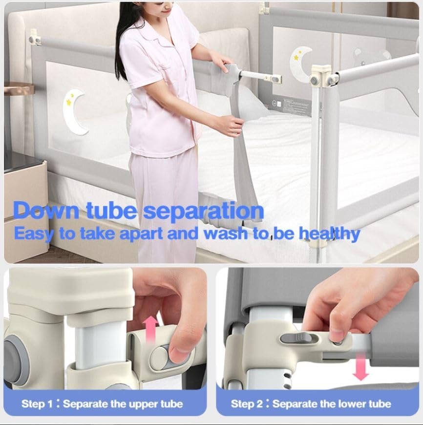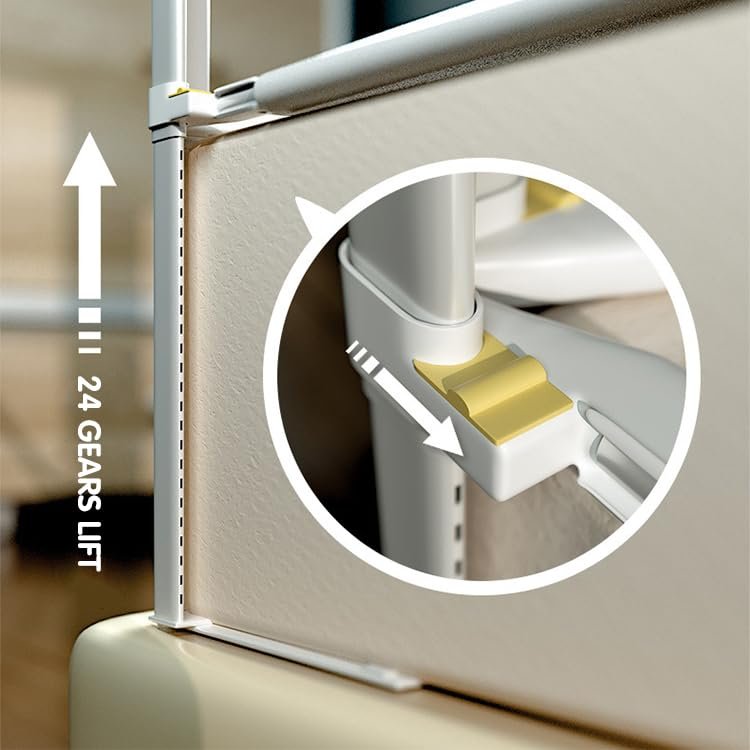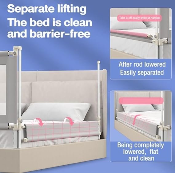 Seamless Vertical Lift: Features an easy-to-operate vertical lifting mechanism that allows the rail to slide up and down smoothly. This space-saving design makes it easy to get in and out of bed or change the sheets without removing the guard.