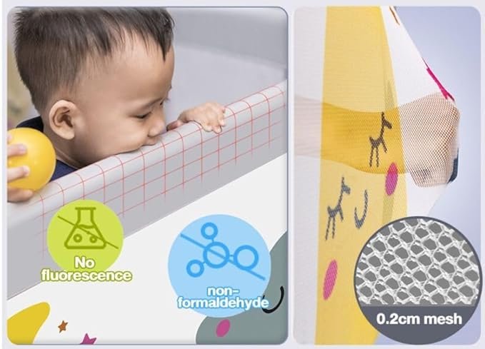 Breathable & Transparent Mesh: The high-quality mesh panel ensures maximum airflow and allows parents to keep a watchful eye on their little ones from a distance, while remaining soft to the touch.
