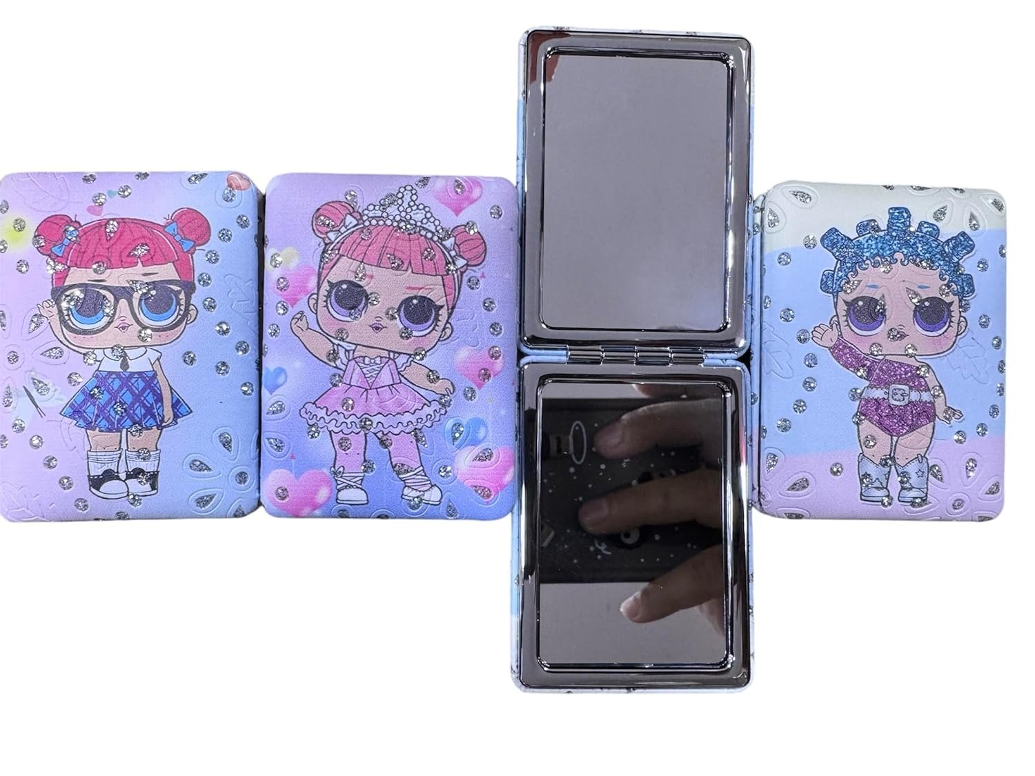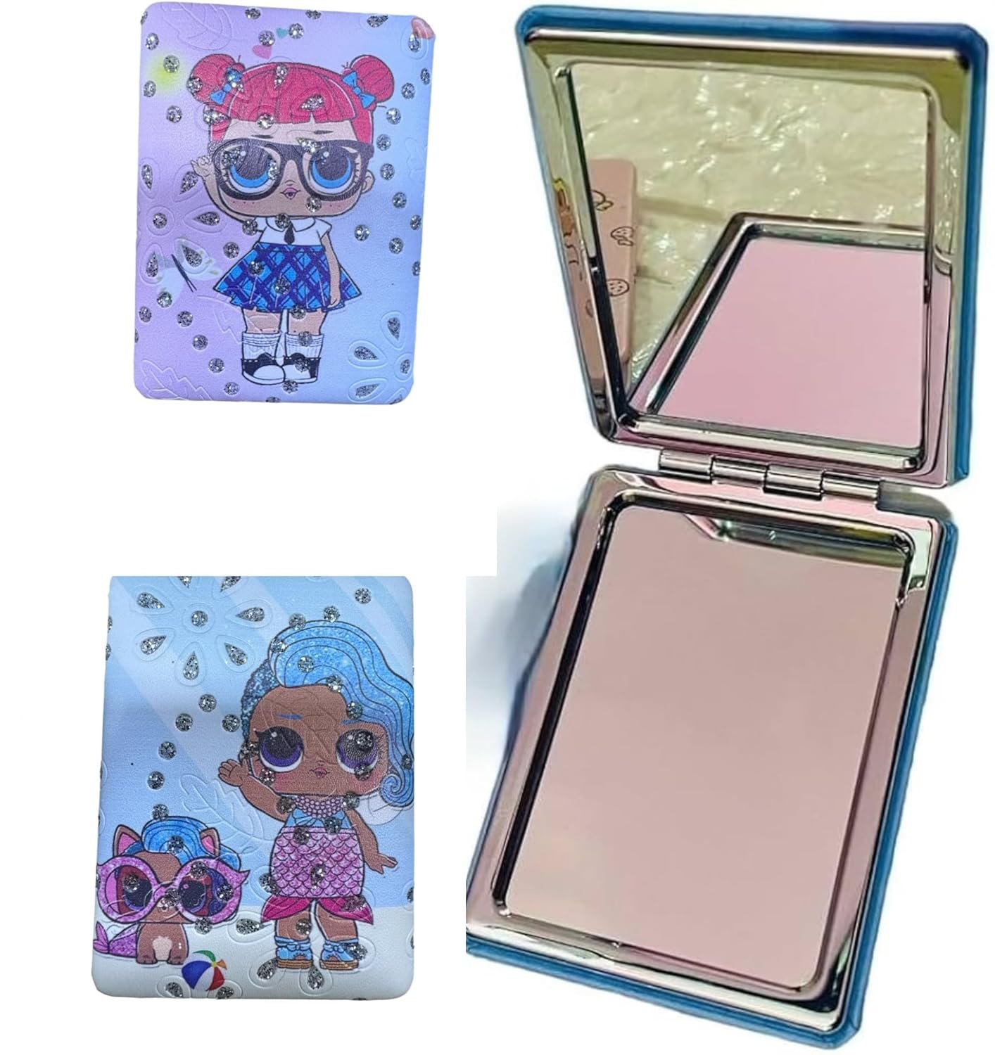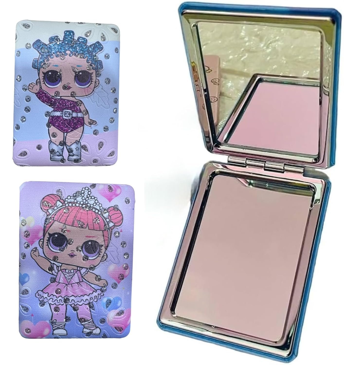 - Folding: This Shimmer Makeup Mirror Can Be Folded, Flipped Freely, and Adjusted at 180 Degrees, Making It Easy to Pack and Avoid Scratches on the Mirror Surface. the High-definition Double-sided Mirror Has a Normal Mirror Surface and a Double Magnifying Glass Surface, Which Can Make Your Makeup Look More Refined and Perfect