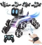 Robot Dog RC-Car, 8WD Remote-Control-Car with Cool Light, 2.4Ghz All Terrain RC Stunt-Car,Remote Control & Gesture Control Watch Included,Coolest Gifts for Boys Girls Age 8-12