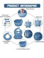 - Easy To Use & Clean –The feeding set features an ergonomic design, making it easy for your little one to hold and use independently, promoting self-feeding skills. Cleaning up after meals is a breeze with our Silicone Baby Feeding Set. It is dishwasher safe, saving you time and effort.