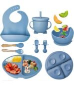 - Richtots All-in-One Feeding Solution: Our Silicone Baby Feeding Set includes everything you need for hassle-free self-feeding – 1 suction plate, 1 suction bowl, 1 silicone bib, 1 sipper cup, 2 infant spoon, and 2 infant fork. Simplify mealtime with this comprehensive set with high-quality, BPA-free silicone material, ensuring your baby’s health and safety during mealtime.