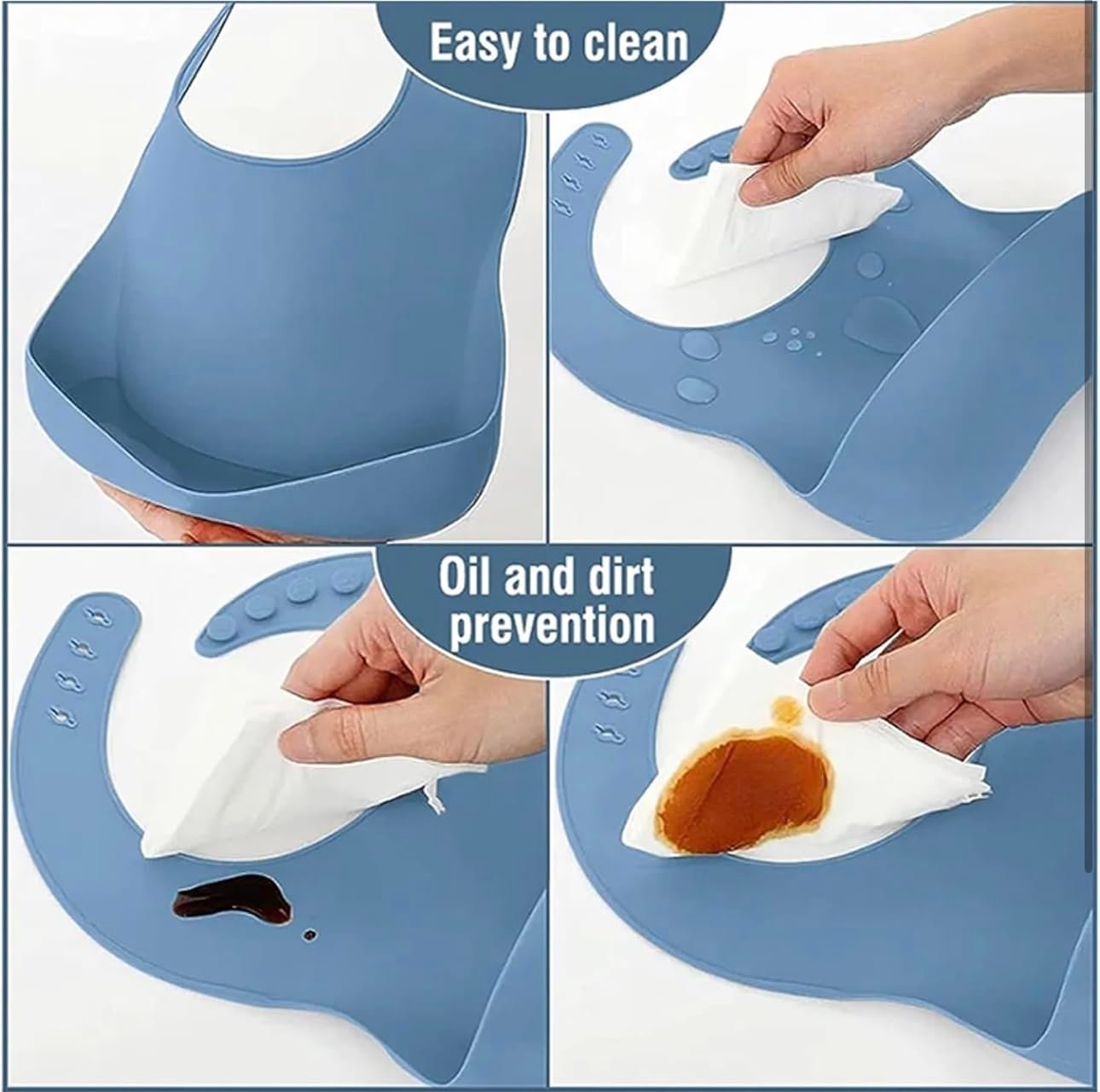 - Sturdy and Comfortable Bib: Our Silicone Bib is designed with a deeper and sturdier pocket, keeping it widely open for efficient food catching. It sits flat on the chest without warping and ensures baby’s comfort without irritation