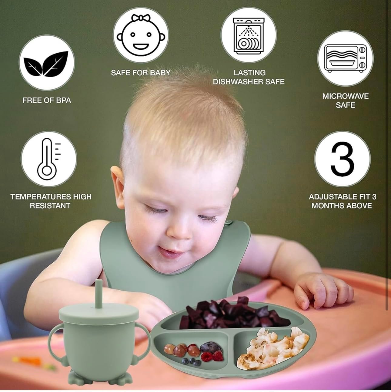 • Easy To Use & Clean –The feeding set features an ergonomic design, making it easy for your little one to hold and use independently, promoting self-feeding skills. Cleaning up after meals is a breeze with our Silicone Baby Feeding Set. It is dishwasher safe, saving you time and effort.