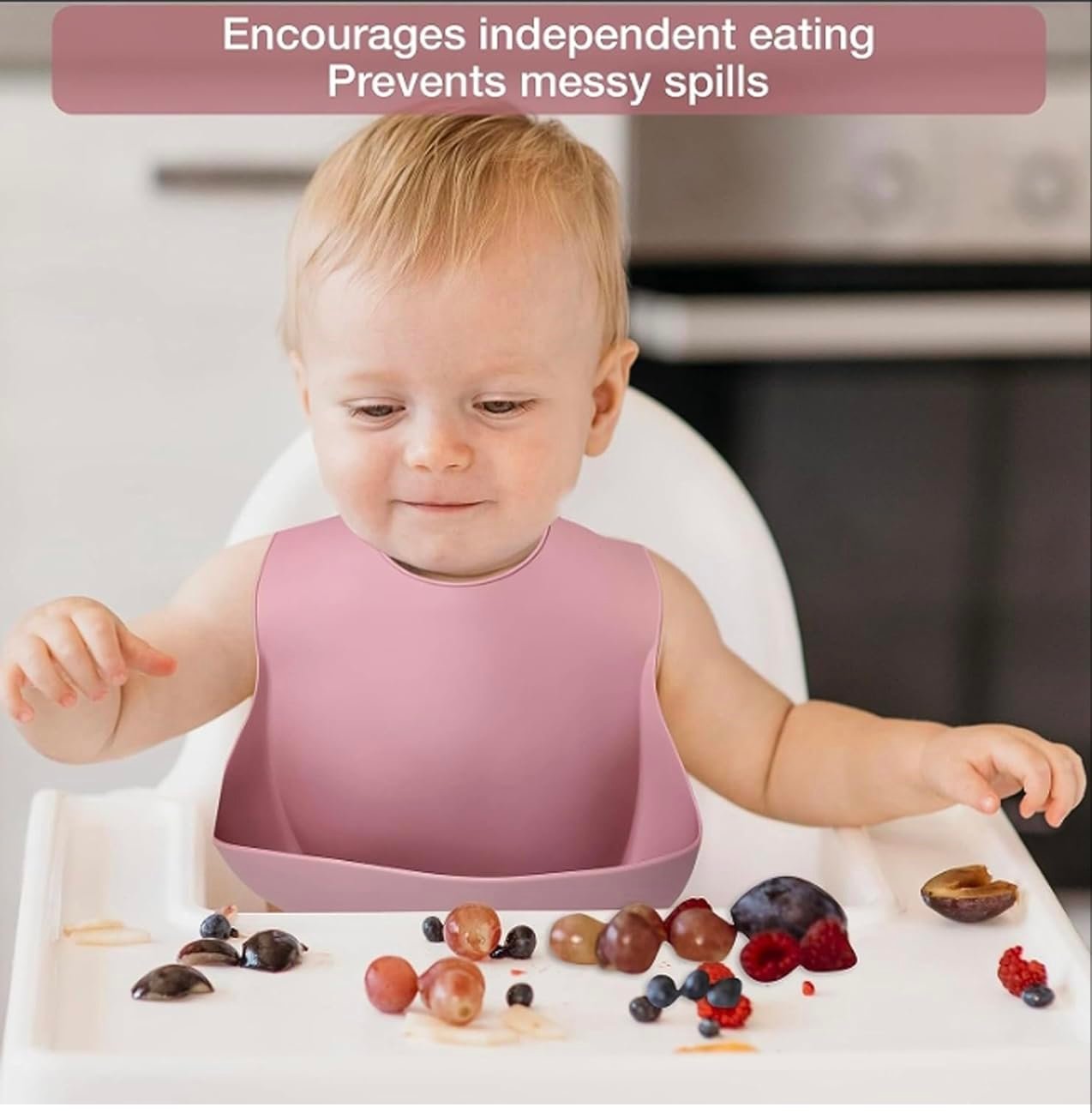 • Sturdy and Comfortable Bib: Our Silicone Bib is designed with a deeper and sturdier pocket, keeping it widely open for efficient food catching. It sits flat on the chest without warping and ensures baby’s comfort without irritation