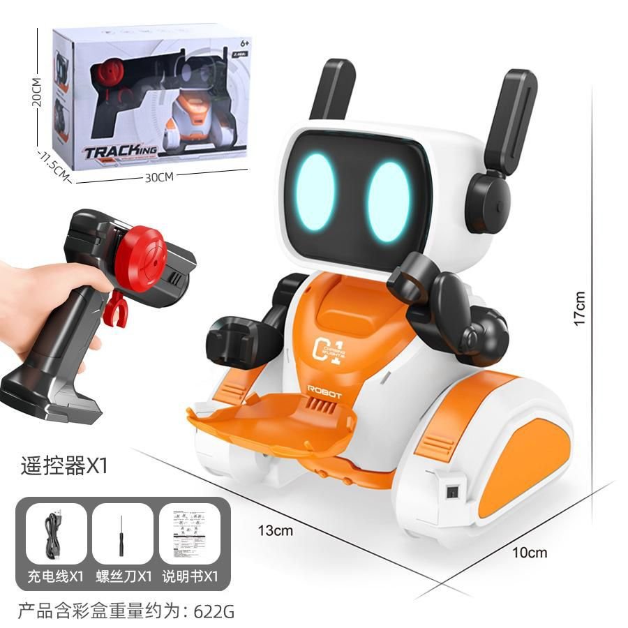 Meet your new high-tech best friend! This smart RC robot features Large Glowing LED Eyes that give it a friendly, expressive personality. Whether it’s exploring the hallway or racing across the living room, its futuristic “Tracking” design makes it stand out from standard toy cars.