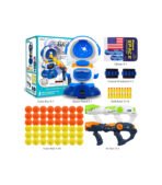 - Shooting Game Toy: Gun target toy comes with 1 American Flag Sticker, 1 Space Robot, 2 Air Pump Gun, 2 Tactical Wristband, 18 Soft Bullet, 48 Foam Ball(orange & yellow). Electric Scoring Target is a perfect addition to kids’ growing armory.
