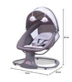 • Seat Cushion – Removable and washable seat cushion; The swinging chair contains 2 power supply modes;1) Power cord supply mode (Plug Adapter); 2) Battery power supply mode (Requires 4 AA/LRS batteries Not Including); Product dimension 81cm*67cm*76cm; maximum