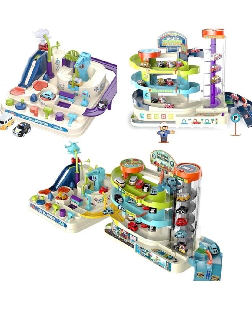 2 in 1 Car Adventure Parking Lot Building Rail Traffic Toys Set Kids Educational Rotary Elevator Building Track car Parking Toys