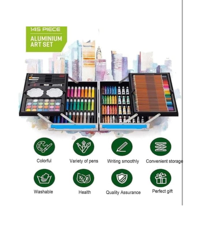 145pcs Artist Colour Set Multiple Kit, Professional Drawing Color Pencils Oil Pastel, Sketches Water Colors Children Drawing Colouring Set without Cardboard Package Box (Frozen)